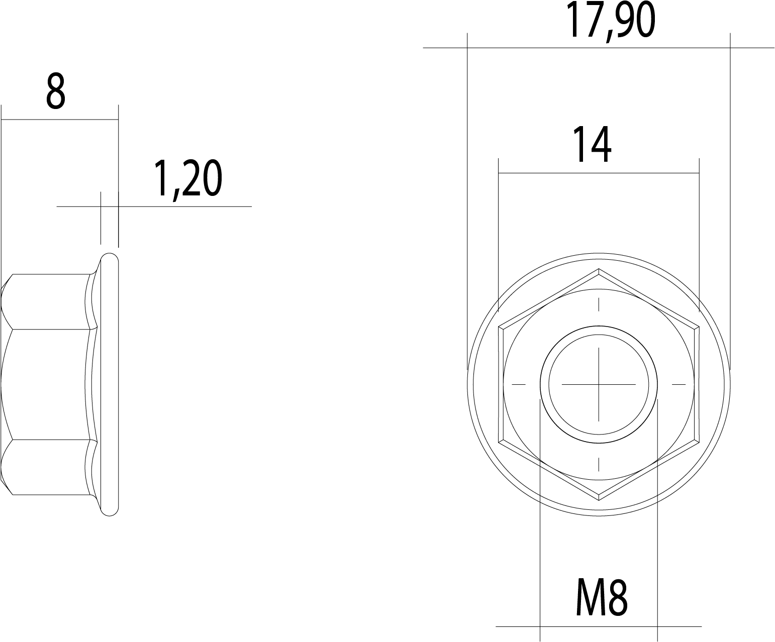 CONTACT - DADO ESAGONALE FLANGIATO M8 DIN 6923 VT0006