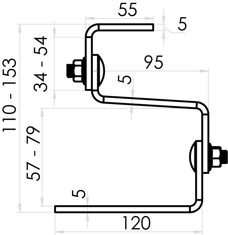 CONTACT - staffa regolabile coppi tegole spessore 5 mm altezza 57-79 mm STR0002