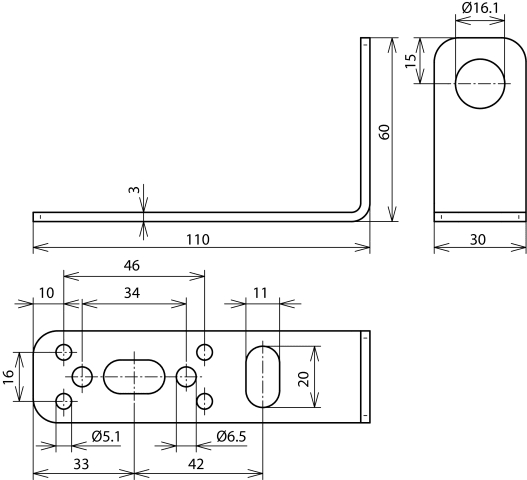 DEHN - Angolare di fissaggio 90 gradi in acciaio inossidabile 110x60x30mm per DEHNgate.