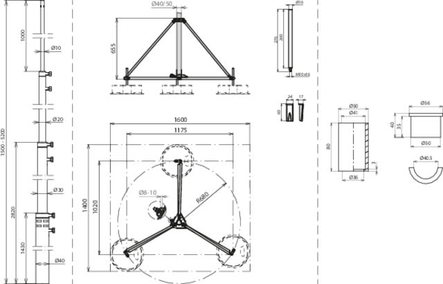DEHN - Asta telescopica 5,2m con treppiede, set tel. fangstange L5,2m AL con treppiede R680mm NIRO, adattatore set D50/40mm.