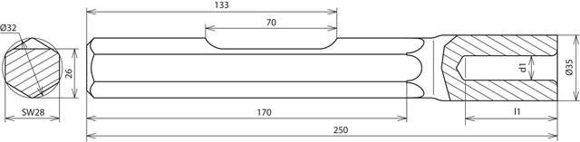 DEHN - Attrezzo per martello demolitore per l'infissione di dispersori di profondità con martelli demolitori. Esecuzione per Bosch, innesto esagonale, apertura 28 mm, TE20, SW28.