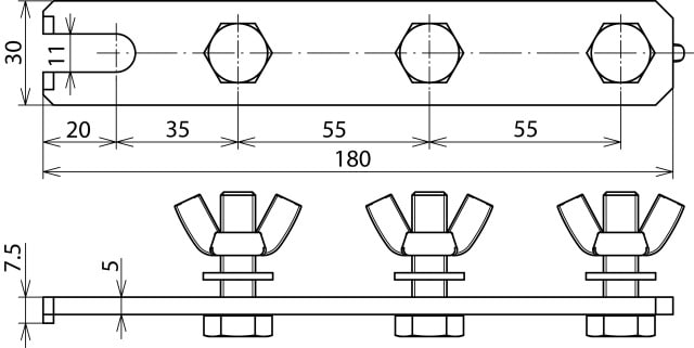 DEHN - Barra colletrice di terra Fe/tZn L 180mm per 3 punti di connessione con viti M10 x35.