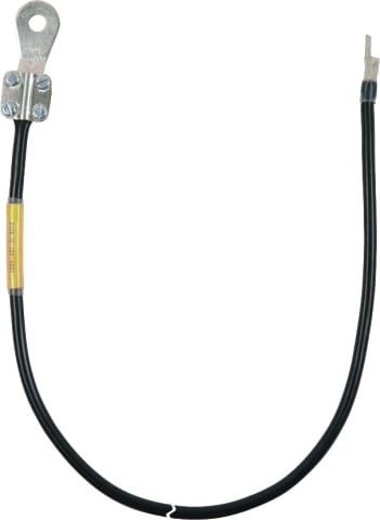 Conduttore di terra in rame molto flessibile, resistente al gelo, stabilizzato ai raggi UV, assemblaggio secondo VG 96927-11. Esecuzione con capocorda, 1 x chiuso e capocorda con perno dimensione 10.