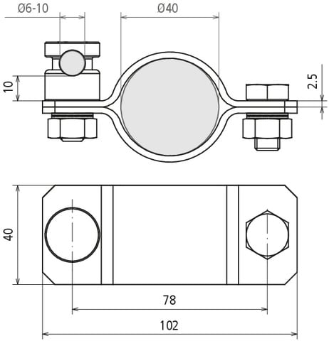 DEHN - Collare in acciaio inossidabile diametro 40 per tubi da 6 a 10 mm.
