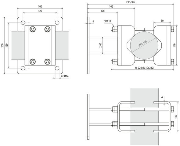 DEHN - Collare pesante per fissaggio a parete e staffa di fissaggio per palo da 55 a 100mm.