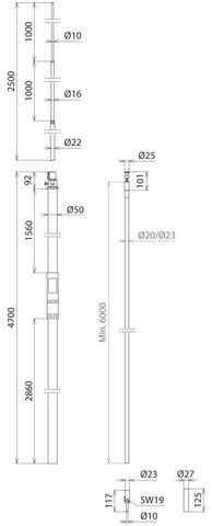 DEHN - Conduttura HVI D 23mm in rame con tubo portante lungo 4700mm e asta di captura lunga 2500mm.