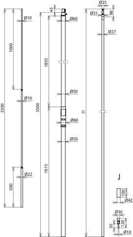 DEHN - Conduttura HVI-power D 27mm CU L 6,0m-SE T- con tubo L 3500 mm e asta di capt. 2, 5m HVI-POWER TUBO PORT. L3500 ASTA 2500 -SE