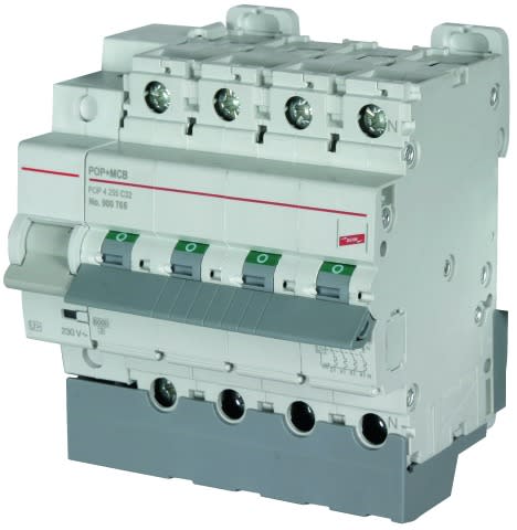DEHN - Dispositivo di protezione da sovratensioni con interruttori magnetotermici 4P C3 2A POP+MCB 4 255 C32. 900766