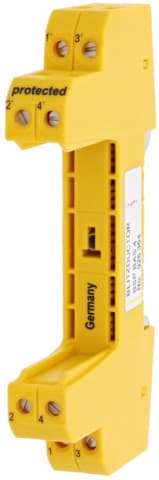 BLITZDUCTOR SP-elemento base come morsetto di collegamento in versione molto stretta, tetrapolare, universale per il collegamento di un modulo scaricatore con interruzione del segnale in caso di modulo di protezione non innestato. La messa a terra sicura del modulo scaricatore viene stabilita per mezzo del piedino della guida profilata tramite un montaggio a scatto. Poiché non ci sono elementi di costruzione del circuito di protezione nell'elemento base, i lavori di manutenzione si limitano ai moduli di protezione.