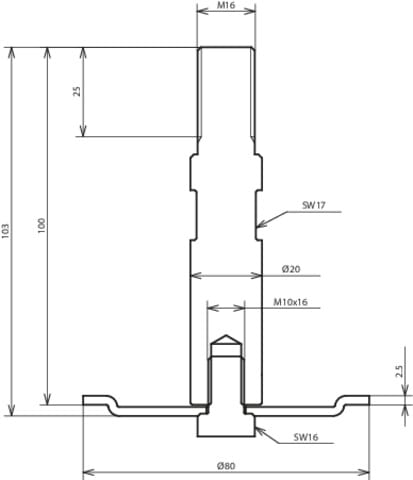 DEHN - Elemento di base con piastra flangiata Fe/tZn D 80/20mm L 100mm M16 per dispersore avvitabile di profondita.