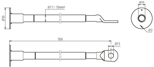 DEHN - Erdungsbrücke für Großrohrerdung L500mm mit Anschlussplatte M16 und Kabelschuh B13mm - CAVO DI MESSA A TERRA PER TUBAZIONE L500.