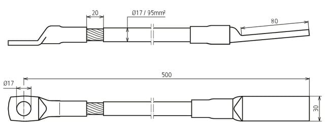 DEHN - Erdungsbrücke für Großrohrerdung mit Kabelschuh D 17mm und Lasche 80X30mm L 500mm CAVO DI MESSA A TERRA PER TUBAZIONE L500. 419400