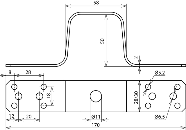 DEHN - Ganascia di ponticellamento L 170mm in C u con foro centrale 11mm.