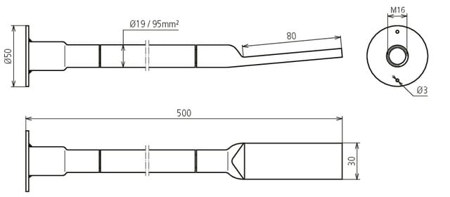 DEHN - Kupfer Kabel Erdungsbrücke NYY-O mit Anschlussplatte M16 Lasche 80X30mm L500mm CAVO RAME MESSA A TERRA.