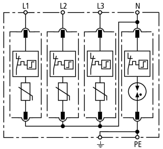 DEHN - Limitatore di sovratensione DEHNguard M per reti trifase TT e TN, SPD T2 3P+N a cartucce. 952310