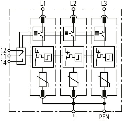 DEHN - Limitatore di sovratensione Tipo 2 DEHN Guard M 3 poli Uc 275V con Tecnologia ACI SPD T2 3P con Contatto, Fuse Integrato. 952330