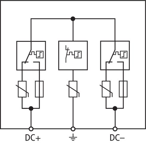 Limitatore di sovratensione multipolare DEHNcube YPV SCI 1000 1M con grado di protezione IP65. Tipo 2 secondo la norma EN 61643-31 per la protezione di 1 ingresso MPP. Unità di manovra in corrente continua a tre stadi con disconnettore e dispositivo di corto circuito combinato con sezionamento elettrico sicuro. Per proteggere da sovratensioni gli impianti elettrici utilizzatori in bassa tensione. Da utilizzare secondo la norma DIN IEC 60364-7-712:2011-04 (realizzazione di impianti fotovoltaici).