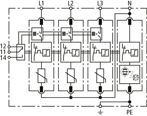 DEHN - Limitatore di sovratensione Tipo 2 DEHNguard M 4 poli Uc 275V con tecnologia ACI SPD T2 3P+N con contatto, fuse integrato. 952341