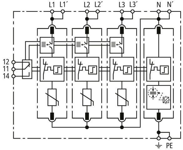 DEHN - Limitatore di sovratensione Tipo 2 DEHNguard MP 4 poli Uc 275V per reti TT e TNS SPD T2 3P+N FUSE INTEGRATO MORSETTO PUSH. 942341