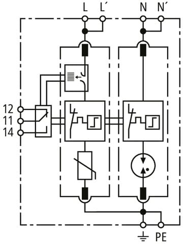 DEHN - Limitatore di sovratensione Tipo 2 DEHNguard MP FM monofase Uc 275V per reti TNS SPD T2 2P CON AUX, FUSE INTEGRATO PUSHIN.