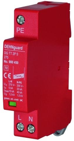 DEHN - Limitatore di sovratensione tipo 2 DEHNguard TT 2P, 1P+N monoblocco 5KA per polo. 900450