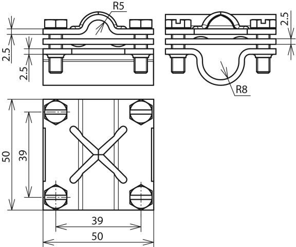 DEHN - Morsetto a croce in rame per TD 16/8-10mm - T d 16/Pt 30mm con piastra intermedia.