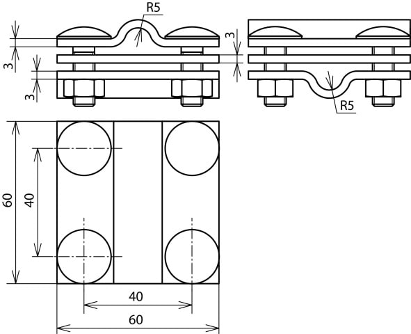 DEHN - Morsetto a croce inox per TD 8-10/8-10mm Rd 8-10/Fl 30mm con piastra interna. 318229