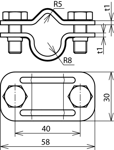 DEHN - Morsetto di sezionamento UNI in acciaio inossidabile per tubi da 16/8-10mm.