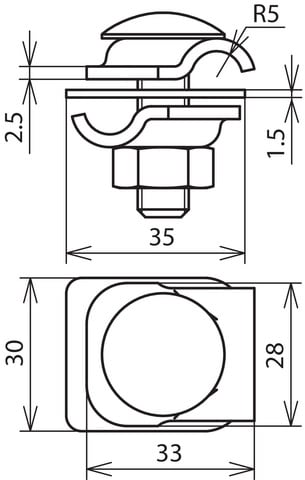 Morsetto di collegamento multiuso "mini" bimetallico secondo CEI EN 62561-1, per uso universale come morsetto a croce, a "T" e parallelo di conduttori tondi. Esecuzione a tre componenti con vite in acciaio esagonale e filettatura nella parte inferiore.