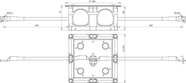 DEHN - Punto di sezionamento 160x160x68mm con 2 cavi di collegamento flessibili Cu 16mm² L ca. 230mm.