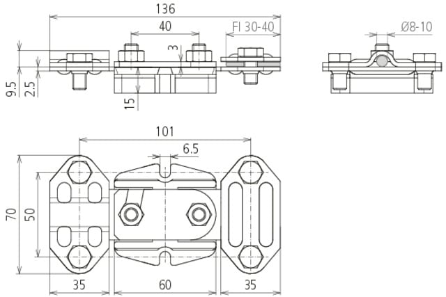 ampiezza conduttore piatto 1 - 30÷40 mm