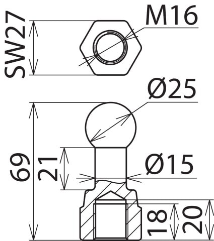 DEHN - Punto fisso a sfera D 20mm con filetto interno M16 KFP 25.