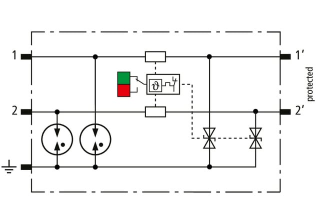 DEHN - Scaricatore combinato compatto per 2 fili singoli con indicazione ottica di funzionamento BLITZDUCTORCONNECT BCO CL2 BE 48. 927925