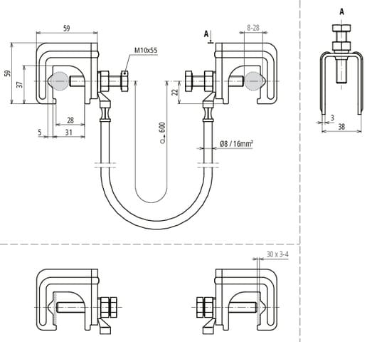 DEHN - Set di collegamento 16mm² L 600mm con morsetto di collegamento Td8-28 Pt30x3,5mm CAVO DI MESSA A TERRA 16MMQ/L 0,6M.