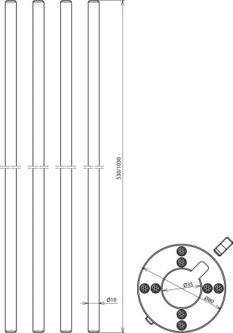 DEHN - Set di fissaggio per montaggio di punti di captazione laterali/orizzontali su tubi portanti HVI long e HVI power 4 raggi al D10x530.