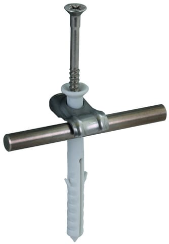 Staffa portafilo DEHNQUICK per la posa di conduttori tondi p.es. sotto intonaco oppure sulla parete (sotto l'isolamento termico a cappotto). Esecuzione con tassello per chiodi 8 x 80 mm, premontato.