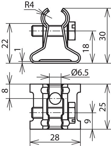 DEHN - Staffa portafilo Rd 7-10mm/Pt 20mm Fe/tZ n INOX con foro di fissaggio D 6,5mm TD7-10mm/PT 20mm FE/TZN. 273019