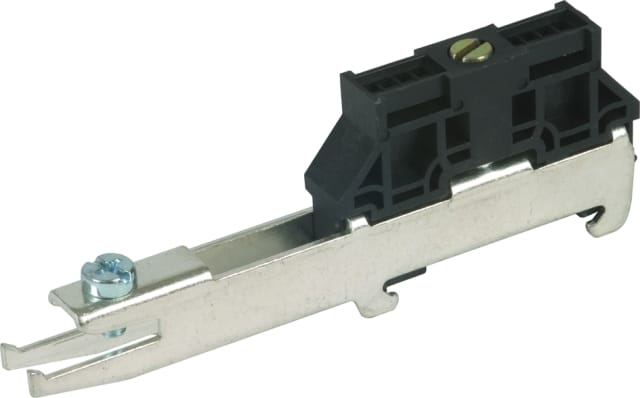 Supporto per barra per sistema collegato a terra, adatto per il montaggio su guida DIN. Collegamento a bassa impedenza dei morsetti per il collegamento di schermi, tramite la barra colletrice alla guida profilata.