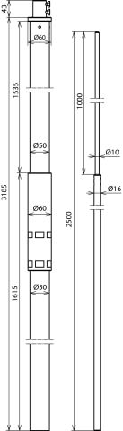 DEHN - Tubo portante D 50mm L 3200mm PRFV/AL con asta di captazione D16/10mm L 2,5m Al.
