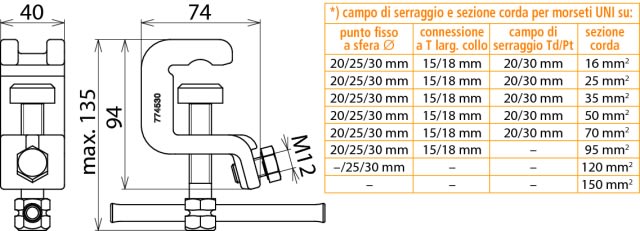 • zona di serraggio - 30 mm