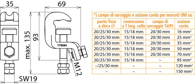 zona di serraggio - 20 mm