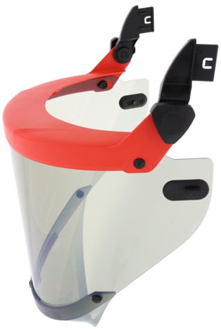 DEHN - Visiera protettiva con clip e sottomento trasparente, classe 2, testata contro arco elettrico, valore ATPV: 14 cal/cm².