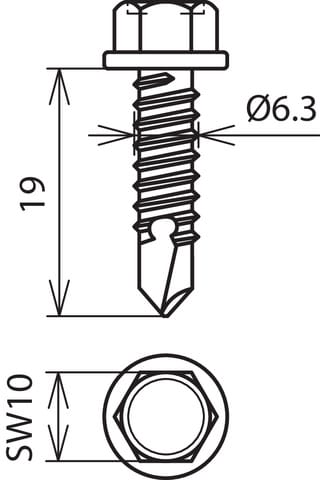 DEHN - Vite autofilettante con testa esagonale DIN 7504, 6,3x19mm inox. 528619