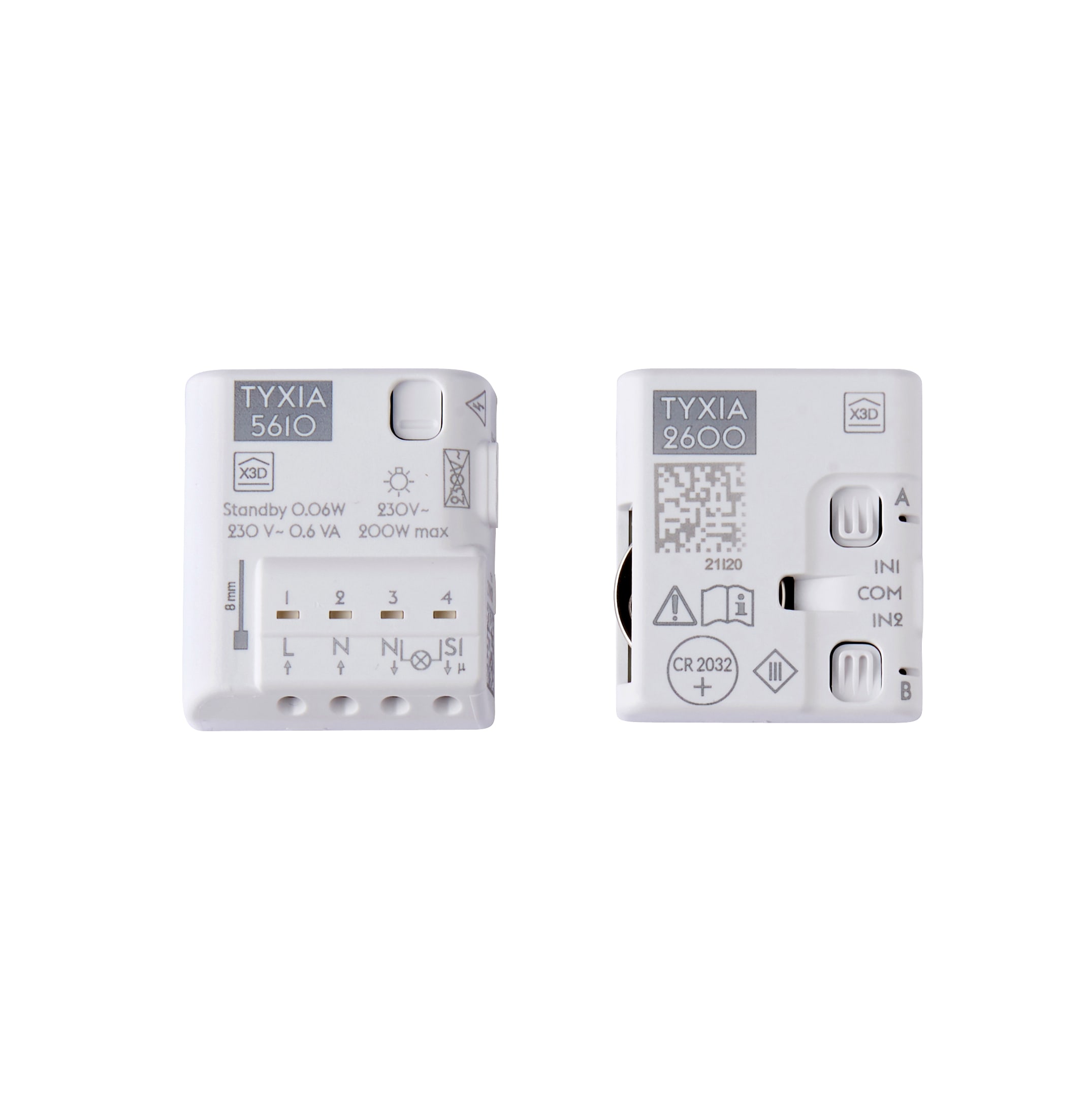 Pack per la creazione di una deviata senza fili da un interruttore pre-esistente con neutro nella scatola da incasso - Composizione: 1 nanomodulo trasmettitore Tyxia 2600 + 1 nanomodulo ricevitore Tyxia 5610