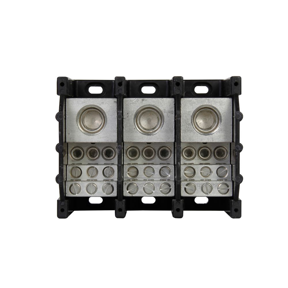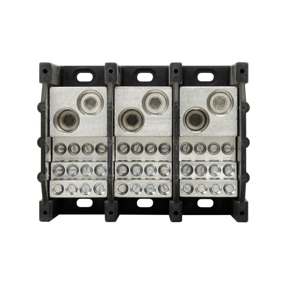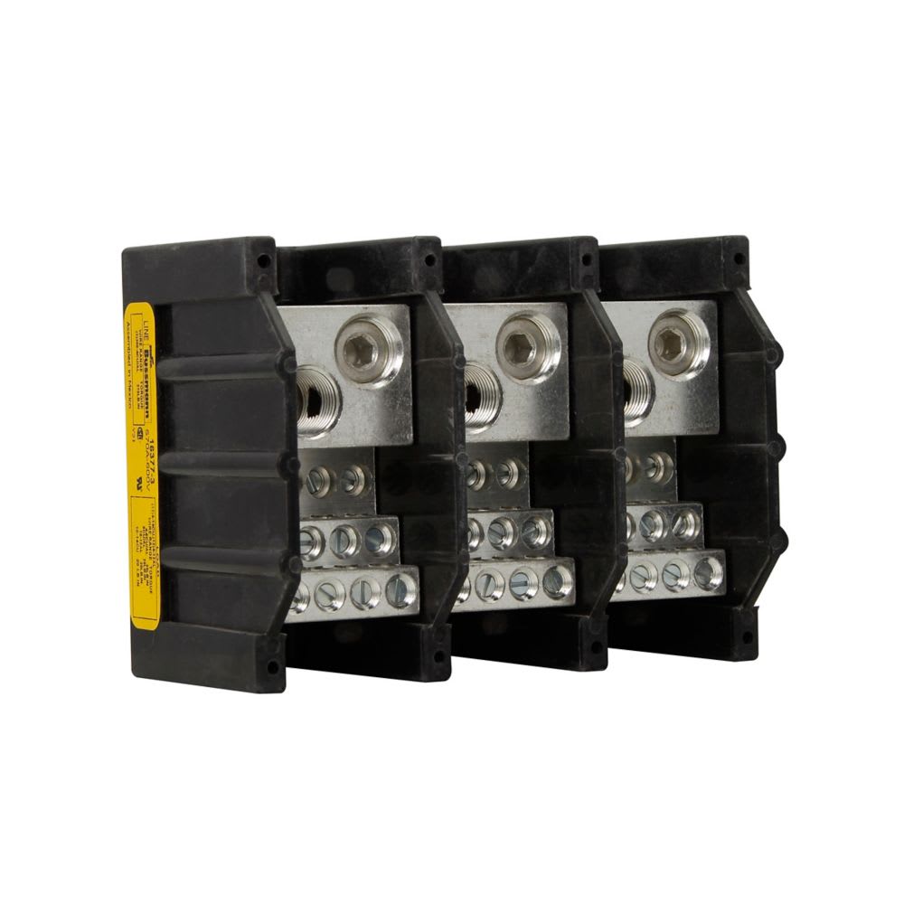 Distribuzione della corrente, Gruppo di morsetti, Bassa tensione, 570 A, AC 600 V, DC 600 V, 3P, UL, Tipo distribuzione, 12 vie per polo, doppi fori su parete laterale di linea, UL, CSA, potere di apertura 10 kA, Termoplastica