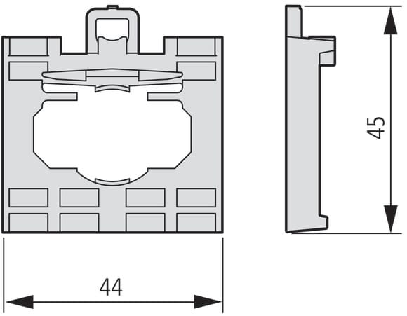 Morsetto di montaggio con quattro punti di installazione per contatti ed elementi LED della gamma di prodotti M22 RMQ. Il normale adattatore M22-A ha solo tre punti. È necessario Il quarto adattatore, per esempio, per 4 pulsanti attuatore e 4 joystick, inoltre, per i casi in cui è necessario collegare quattro contatti in serie.