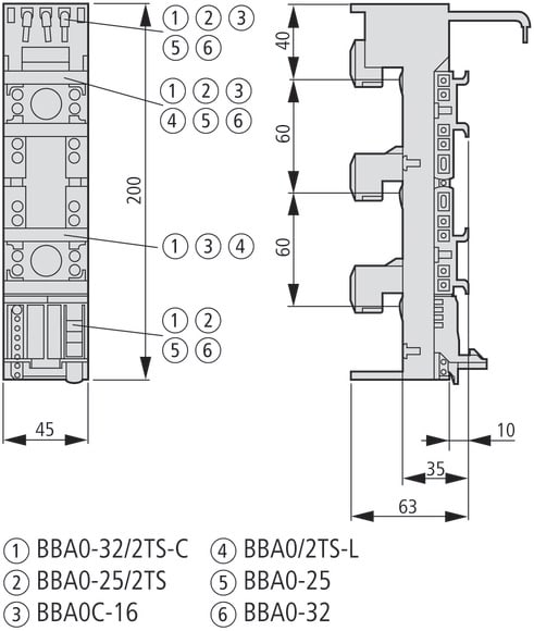 EATON INDUSTRIES - Adattatore universale per sistemi a barre DIN 3P, 45mm, 25A. 101481
