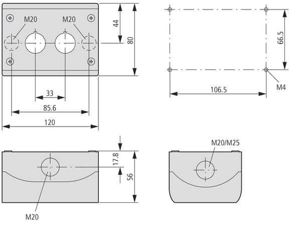 EATON INDUSTRIES - Alloggiamento Attuatore Pulsante Custodia Instabile 2 NC 2 NA Collegamento a Bullone Numero di Posizioni 2 Grigio con Iscrizione Ghiera Fron M22-I2-M1 Elem Completo in Custodia 216529