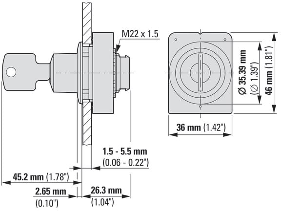 EATON INDUSTRIES - Attuatore con sblocco a chiave, a filo pannello, ad impulso, 2 posizioni, MS1–MS20, estraibilità della chiave: 0, ghiera frontale: acciai M30I-FWS-MS* SEL <CHIAVE> D30 A FILO 2PO.