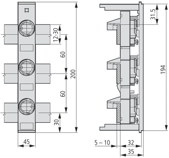 EATON INDUSTRIES - Base fusibile montaggio bus 25A 500V DII/E27 45mm DII-SO/25/3-R-PS FUS 3P VITI CAL. 110394